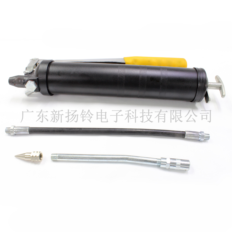 :槍身材質可能為高頻管、不鏽鋼或經過鍍鋅處理的金屬等,如鑫田手動黃油槍采用高頻管材質,世達黃油槍采用不鏽鋼材質。