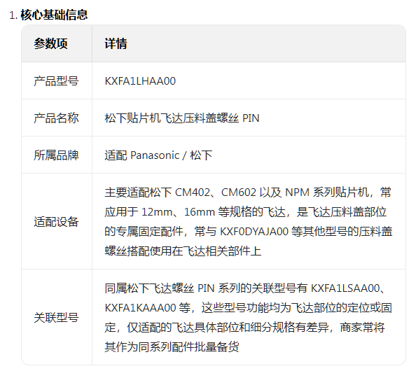 聚焦於 SMT 電子製造生產線,比如消費電子、汽車電子等領域的電路板貼片生產環節,適配鬆下 CM402、CM602 等主流貼片機的自動化作業流程,是維持飛達正常運轉、減少貼片機卡料故障的重要小配件。