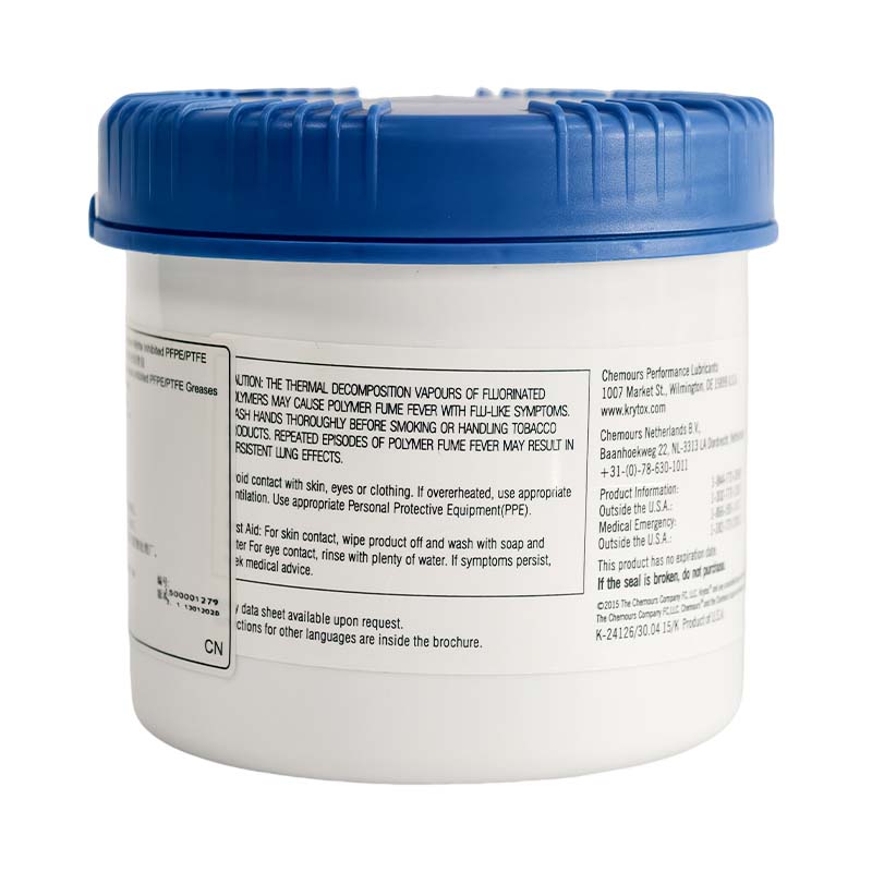 :全氟聚醚(PFPE)為基礎油,聚四氟乙烯(PTFE)為增稠劑,含專利防腐添加劑,不含矽、氯等雜質,化學惰性高。